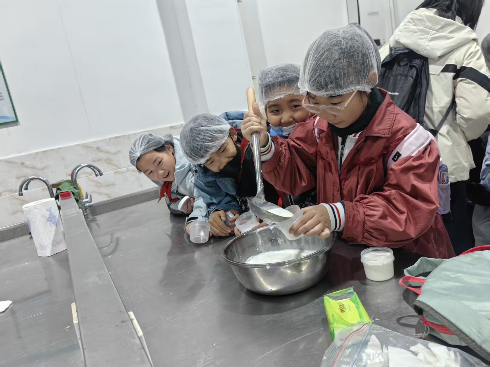 在“酸奶的魔法手册”环节,师生们先学习了酸奶的营养、发酵原理、制作步骤、选购和饮用注意事项,在明确实验室安全规则后,分组协作,亲手体验酸奶制作的全过程,看着自己的成果,同学们脸上洋溢着满满的成就感,不仅掌握了实用的生活技能,更深入理解了食品发酵的科学真谛。