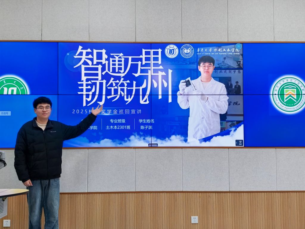 活动现场,来自水利土木学院的陈子淇以“全面发展”为核心展开分享:作为中共预备党员,他成绩、绩点均位列学院第一,在学业、科研、创新创业、社会实践等维度同步深耕——科研上聚焦“沥青路面老化与融雪剂腐蚀”课题,以项目负责人身份响应“交通强国”战略;实践中积极参与竞赛与社会活动,以行动诠释“奋斗是青春最亮丽的底色”。同时,他向同学们分享学习方法:注重效率与方法、主动屏蔽干扰、坚持主动思考与劳逸结合,秉持“勤能补拙,精益求精”的学习态度。