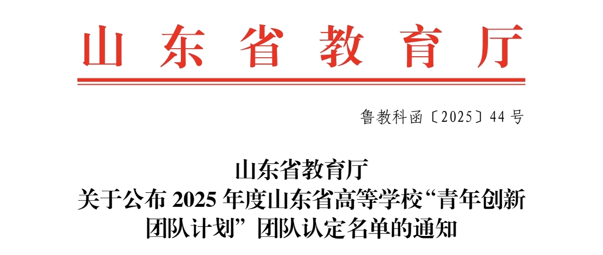 近日,山东省教育厅公示了山东省高等学校2025年度青年创新团队名单,由食品学院刘欢、张风雪、肖传丕、张艳芳、苏丽红组成的肉品加工与品质调控创新团队,荣获山东省高等学校青年创新团队。