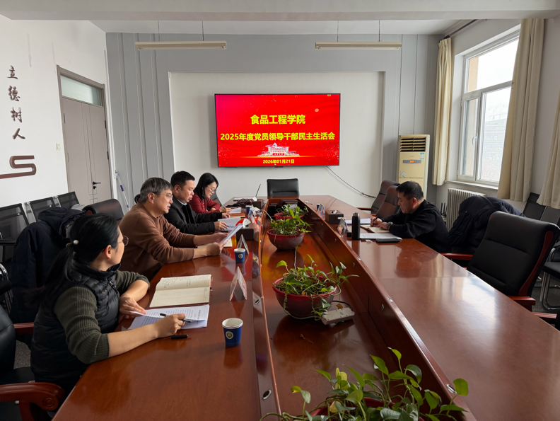 2026年1月21日下午,食品工程学院在6号教学楼401会议室召开2025年度处级以上党员领导干部民主生活会。学院领导班子成员党委书记张绍旭、院长贡汉生、副院长赵芹、副院长张爱迪参加会议,校党委督导组李志大同志到会指导。